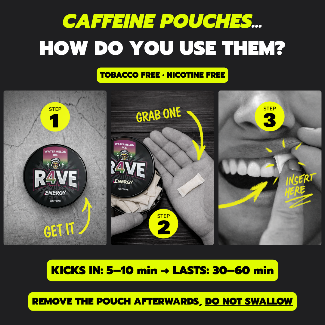 Place the pouch under your upper lip, off to either side. Leave it there and enjoy steady energy, focus, and flavour.